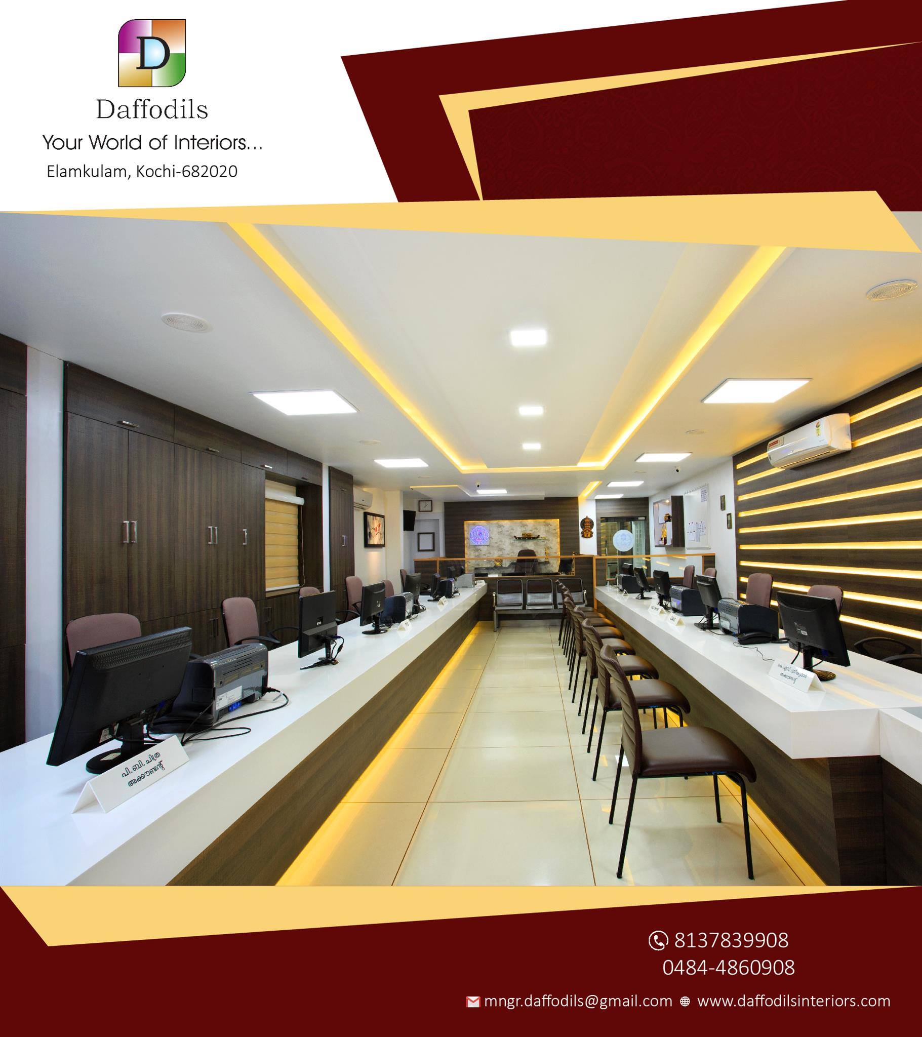 Daffodils Interiors is a full-service design & contracting firm that offers comprehensive interior planning and consultancy services to private homes, villas, exclusive kitchens, hotels, malls, lifestyle stores etc. Known for our innovative solutions, Daffodils Interiors is involved with all aspects of designing, be it residential or commercial, including project management.